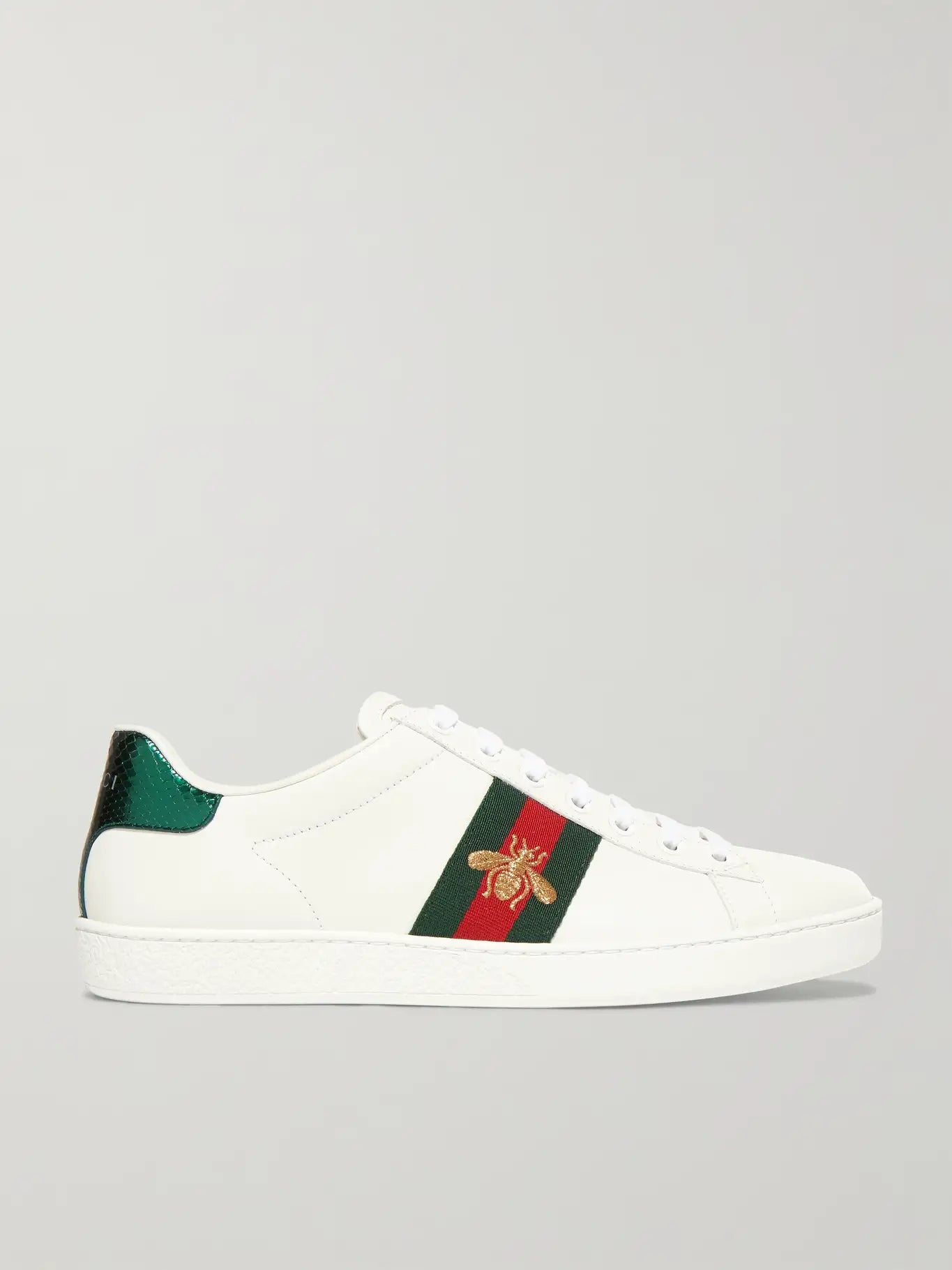 GUCCI Sneakers in pelle ricamata con dettagli stampa serpente Ace